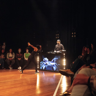 The music was funky, and the dancing was ridiculous. The way that the two were beautifully entwined had the crowd cheering and dancing. How could you not? The Studio was set up with the DJ box and a square shaped dance floor/stage with a single row of chairs surrounding. The rest was standing room only. So, it felt like we were in New York City watching break dancers break and compete! All that was missing was the cardboard! In front of the DJ box there was a large screen so the audience could see DJ Total Eclipse do his thang. The dancers deserve all the accolade you can throw at them and more. The way they moved with DJ Total Eclipse was something else. Yes, it was playful, intense, fun, powerful, beautiful and exciting to watch. Nick Power did a sensational job of paying homage to the origins of hip hop. It is clear that the marriage between music and dance is still going strong.