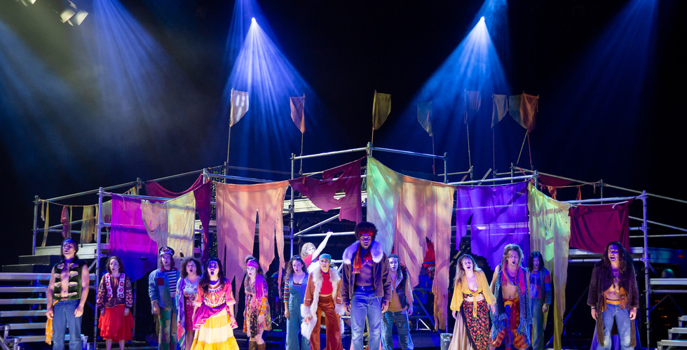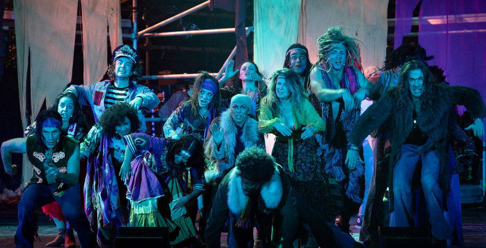 But as hilarious and delightful as the initial introductions are, this story is one about fighting against injustice, and shocking cruelty. The protest takes on many forms- Sheila (Prinnie Stevens) is a civil rights activist, leading with Dionne in showcasing the power and love that women of colour have always demonstrated when opposing corrupt systems throughout history. Their voices are two of the most spectacular in the show, which is truly an achievement given the exceptional company they are in. The interracial cast was a revolutionary move when the show opened, and noting that this diversity is still not the norm 50 years later is very telling for the state of Australian theatre.