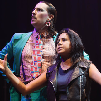 Lemon Tree On Dreg Street, according to writer Amy May Nunn, began as a writing exercise during lockdown and was never meant to make it to the stage. Coming in at 70 minutes in length and incorporating elements of music and poetry, this “ode to those who slip through the cracks” is an endearing and entertaining piece of theatre. The characters are distinct, imaginative and colourful. On the surface, at least in regards to naming convention, there is a simplicity in these characters – Cow Girl (Milo Hartill) is a girl who loves cows, Vulture Man (Alex Donnelly) is a property developer, Possum Lady (Michelle Perera) lives under, and is deeply in love with, the titular Lemon Tree. Boots and Twiglett (Hayley Edwards and Ayesha Harris-Westman) both evoke a simple Australian character, somewhat bush, somewhat earthy, with a languid pace of life that occupies a special place between youth and early adulthood – the dreamy days you live before the hustle and bustle of life overtake you. Indeed, the whole seventy minutes feels like that moment in time - the last hurrah before the responsibilities of the future catch up with you. The dialogue is pacey, though, and littered with sharp little quips brought wonderfully to life by the energetic cast. Michelle Perera is wonderful at offering up an age-worn drifter, older and wiser than the rest of the characters and clinging on to the one moment of peace and happiness they have found since their own sleepy dream of youth was whisked away. Michelle’s delivery is excellent – it lifted the energy at the beginning of the piece and carried it along until the arrival of Milo Hartill’s Cow Girl who carries on like a whirlwind, her mind and mouth a-flutter of exuberance. Alex Donnelly’s Vulture Man brought to mind a flamboyant Austen Tayshus, blokey, oily but kind of sensitive – a wonderful portrayal of a shady character with a redemptive arc. Hayley Edwards and Ayesha Harris-Westman both give delightful, engaging performances as the characters of Boots and Twiglett and provide the raison d'être for the play but it’s the three aforementioned characters who really move the piece along – particularly Possum Lady whose marriage to the Lemon Tree provides most of main drive to the story. Under the strong hand of director Miranda Middleton the excellent cast extract warmth, joy and laughter out of Amy May Nunn’s pleasant lockdown dalliance. The costumes are takes on everyday modern clothing – simple but effective (Although I would say Vulture Man’s Rather Excellent boots were anything but simple) and each outfit containing something related to the character’s name – Vulture Man has feathered shoulders, Possum Lady has a grey fur trim on her vest etc. These simple adjustments to modern garb give the characters an anthropomorphic vibe and, along with the set design – a child-like, Play School-esque interpretation of a front yard, house façade and accompanying lemon tree – reminded me, rather pleasantly, of Australian children’s television from the 90s, particularly The Ferals. These elements also gave the impression of backyard, suburban, share-house fantasy – the types of stories that might arise from spending long days on the porch with your housemates weaving the characters and characteristics of your neighbourhood into imaginative and playful fancies. Casey Harper-Wood, who designed both set and costumes, really tapped into the pulse of the play and brought these elements together in a way that elevated the piece. The play incorporated music throughout with original compositions by Oliver Beard. This was used effectively and the a cappella singing from the cast was lovely. Their voices blended well and the melodies were sweet and gentle. Lighting design by Aron Murray, in conjunction with Oliver Beard’s sound design, gave us sunrise, warm morning and moonlit night to the accompanying sounds of cicadas and birds, the rustling of leaves in the wind. Like a dreamy, summer’s day on the outer edge of Australian suburbia.