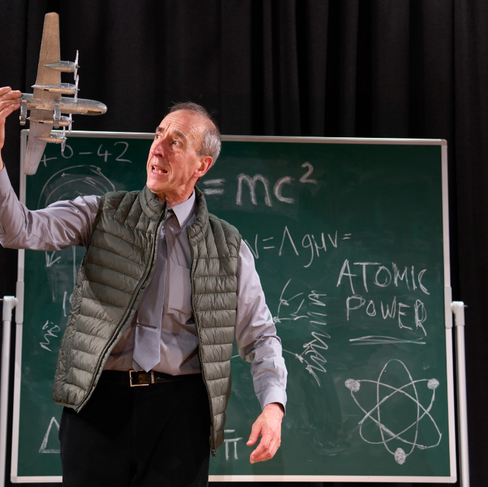 Mears too is excellent and takes on a series of roles and accents that are each played with such sincerity and respect. Mears is a commanding presence on stage - as General Tibbets he is chilling in his lack of remorse and Mears’ portrayal of this as a Military trait is executed flawlessly. Mears also takes on Leo Szilard, the Jewish Hungarian scientist who first had the idea to split atoms to release exorbitant amounts of energy, an invention that led to the creation of the bomb. His storyline is heartbreaking as his discovery is turned against him but again, Mears offers an authenticity to the story that makes this must see theatre.