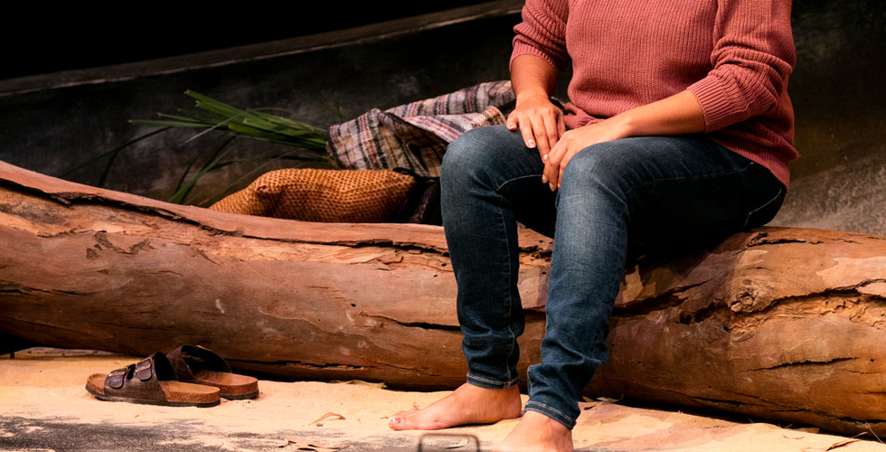 As well as a beautifully cohesive cast, the design team for Winyanboga Yurringa should be commended for their ability to completely immerse us in the world of these six women. Isabel Hudson’s set is visually captivating, the curves of the sand dunes and rocky ledges wrapping around the women as if to welcome them back with open arms. Most memorable is a moment when Jadah stands upon the ledge and questions her identity, while golden sand slowly cascades around her and brings her back to the land. Combined with Verity Hampson’s dynamic lighting and Steve Francis and Brendon Boney’s mix of guttural and naturalistic sound design, the land feels as human as each of these women.